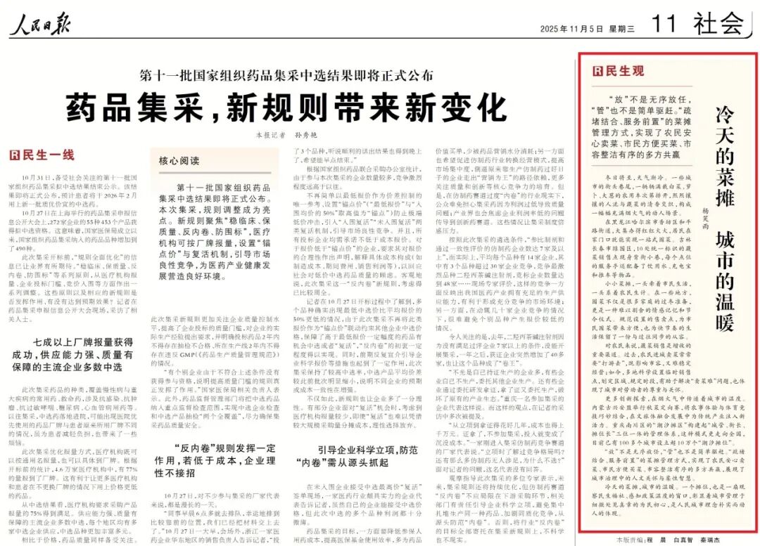 冷天的菜摊,城市的温暖。一个摊位,也是一扇观察民生福祉、感知政策温度的窗口,彰显着城市管理于细微处见真章的为民初心,是人民城市理念朴实而动人的体现。